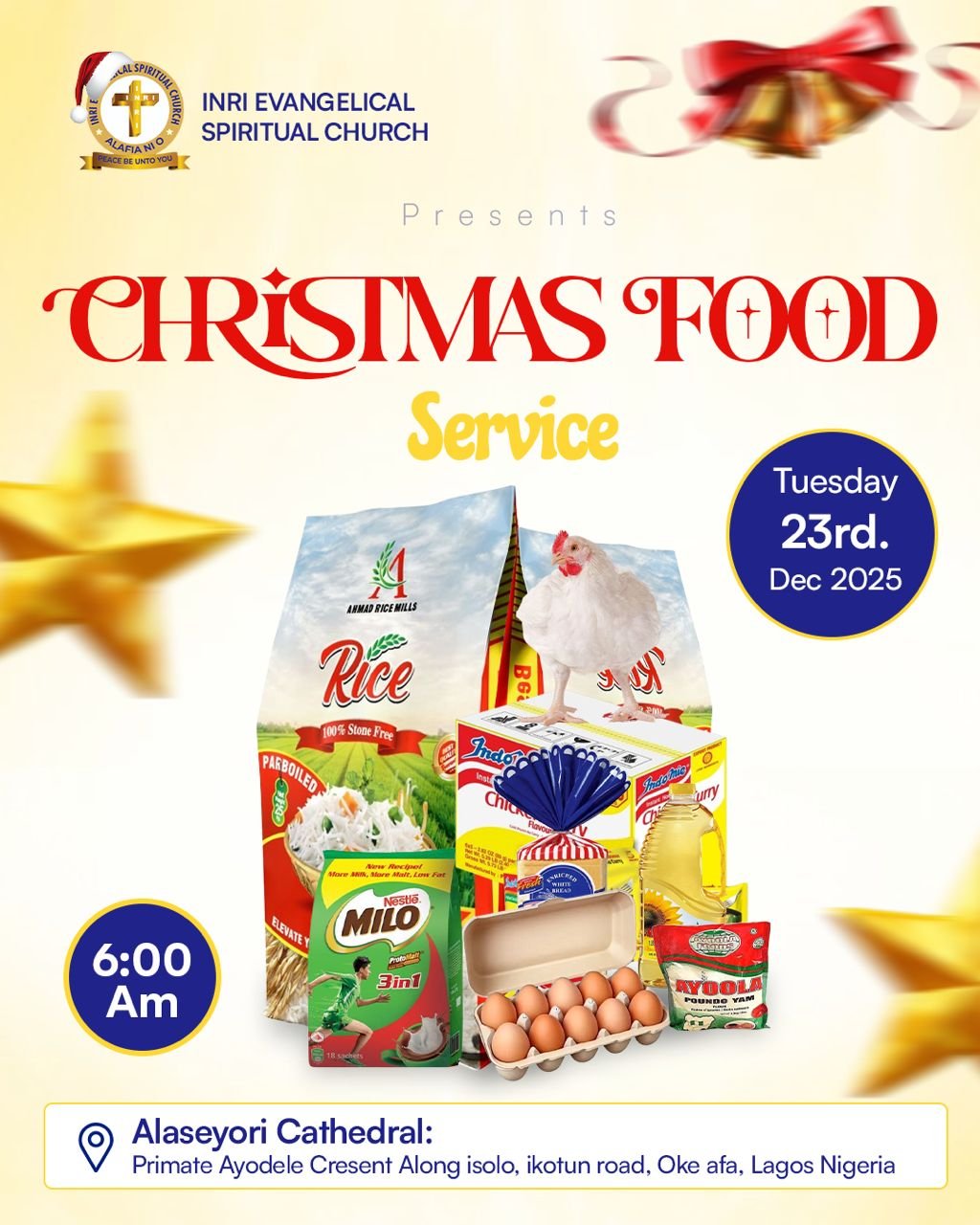 Tomorrow marks that familiar time of the year when we gather to share Christmas goodies, rice, chickens, and other food items, so that every family can eat well, not just for a day, but with dignity and joy. At INRI Evangelical Spiritual Church, this is not a ceremony; it is a responsibility. Food must reach the table of every household.